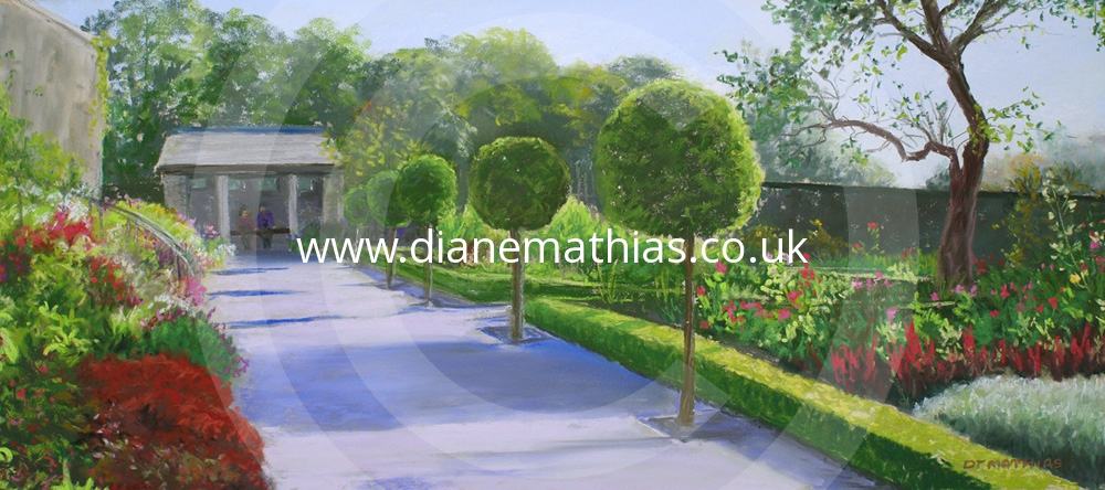 path, summer, couple, flowers, topiary, trees, garden