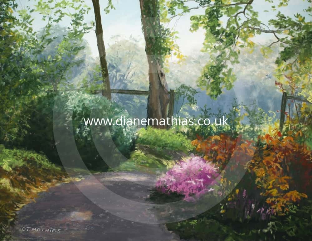 flowers, path, sunlight, trees