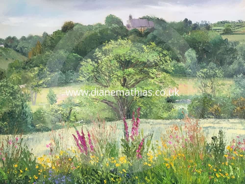 foxgloves, wild flowers, church