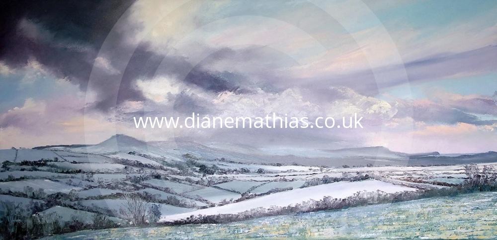 Preseli snow, Preseli mountains, Carningli, farmland, winter
