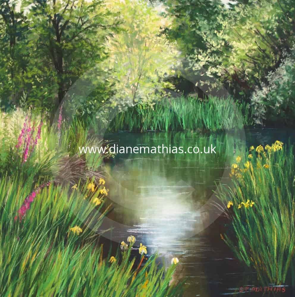 wild flowers, trees, water, lake, sunny