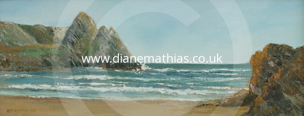 waves, blue sky-blue sea, cliffs, surf, Gower Peninsula, summer, beach, golden sand